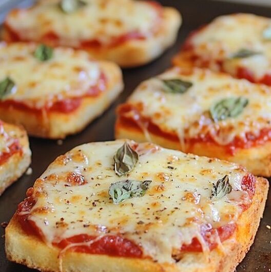 Garlic Bread Pizza is a simple, tasty, and fun meal that you can easily make at home. It is made using crispy French bread instead of regular pizza dough, which makes it quicker and easier. The bread is first spread with rich garlic butter, then baked until slightly crispy, and finally topped with sauce, cheese, and your favorite toppings.